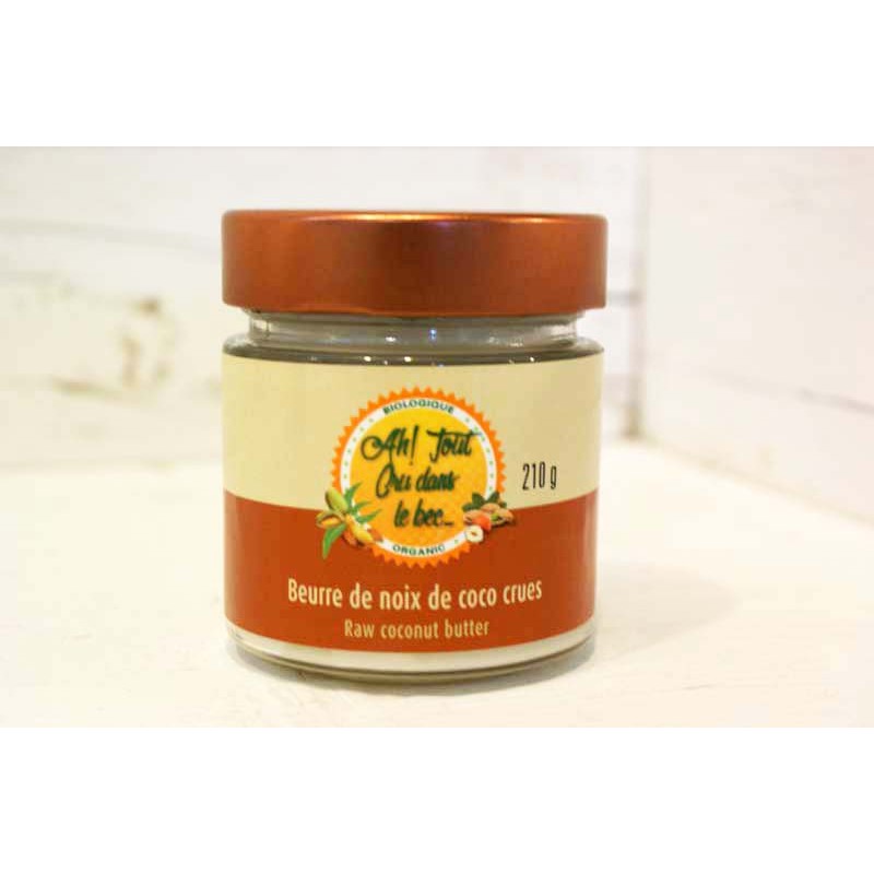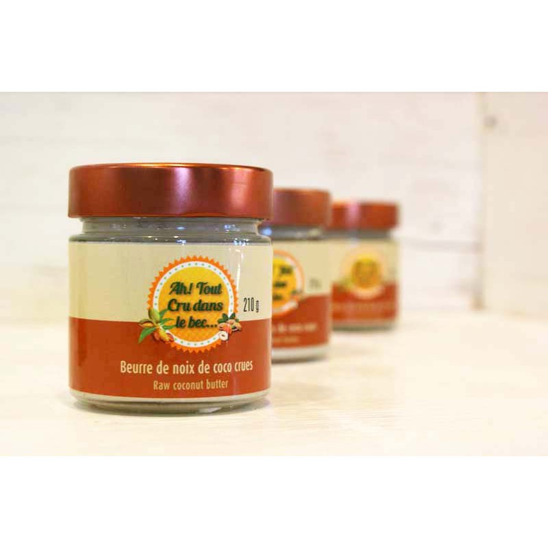 Ah! tout cru dans le bec... est une entreprise gourmande qui produit différents beurres de noix crues.